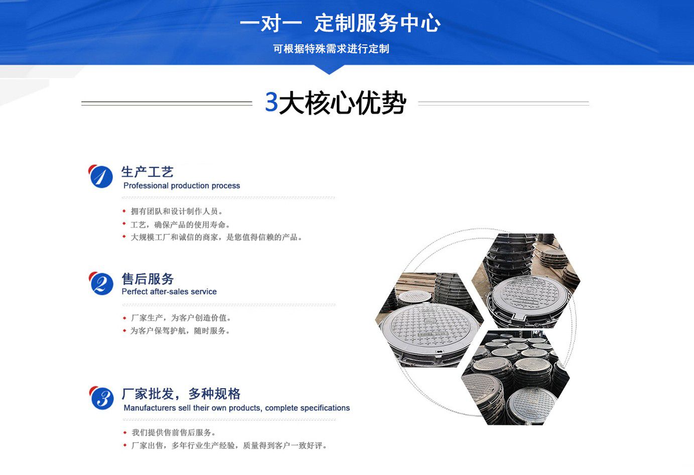 山東聊城健暉鑄造有限公司主營各種球墨鑄鐵井蓋,球墨鑄鐵防盜井蓋,球墨鑄鐵方形井蓋,球墨鑄鐵井蓋廠家等產(chǎn)品,可廣泛應用于市政建設、軌道交通設施、城市園林綠化、安防配套設施、石油化工等諸多領域?! ‘a(chǎn)品采用良好的工藝流程,以確保產(chǎn)品質量的穩(wěn)定性:以良好的檢測設備,確保質量的可靠性。廣泛應用于國內外城市的市政建設,通信,自來水,消防,園林,環(huán)保等行業(yè),產(chǎn)品大獲贊譽! 我們堅持“質量為本、用戶至上、科技創(chuàng)新、科學管理”的經(jīng)營方針。 面向未來,我們積極響應新時代的號召,走“一帶一路”、堅持“綠色環(huán)?!钡膰曳结樥?,秉承“安甄致選,普利天下”的企業(yè)理念,共同鑄就新時代的輝煌篇章。...